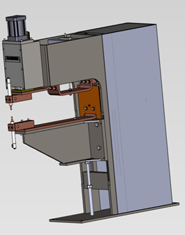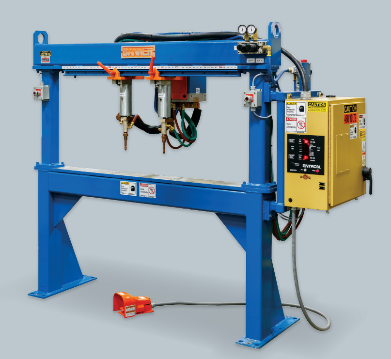 - Straight line action, using a truck and rail ram guidance, provides rigidity required for projection welding