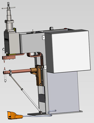 - Straight line action, using a truck and rail ram guidance, provides rigidity required for projection welding
